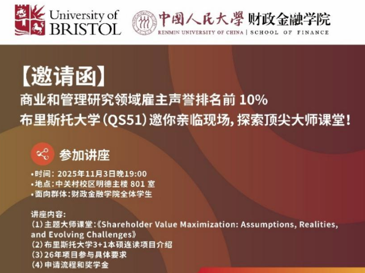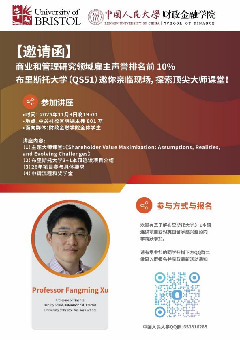 Lecture | Bristol Prof. Fangming Xu: Shareholder Value Maximization: Assumptions, Realities, and Evolving Challenges